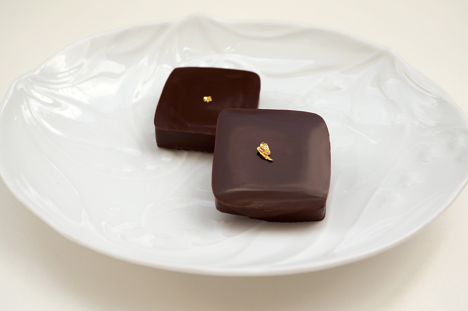 シャープな苦味のガナッシュです。カカオ分55%と61%をブレンドしたビターな味わいをお楽しみください。